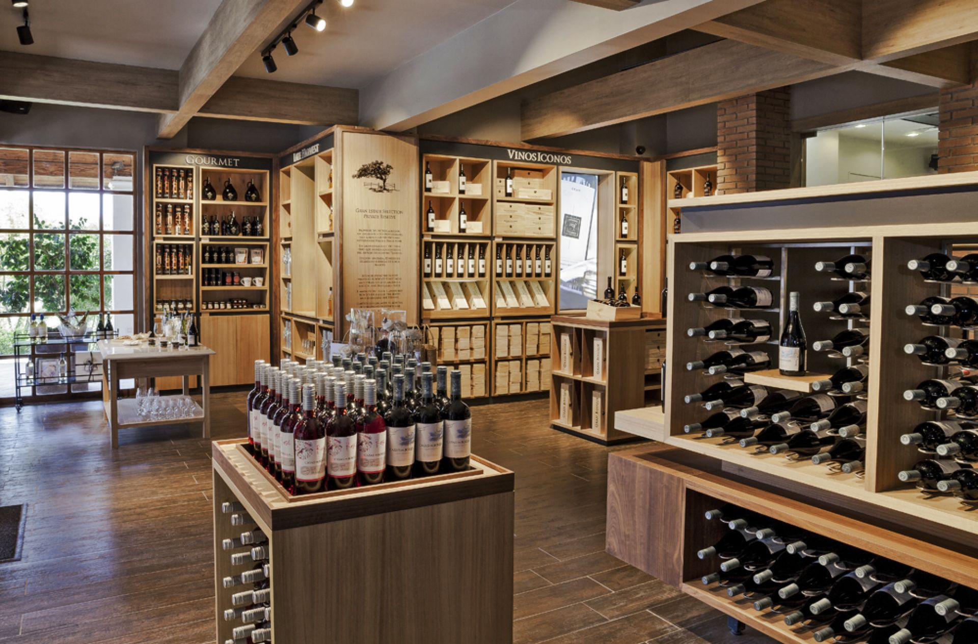 El objetivo que se tuvo en mente al crear esta tienda fue diseñar una experiencia integral que transporta a los visitantes al mundo del vino. Ello explica la vista a la sala de barricas, su arquitectura en base a materiales como madera, metales y piedra, la iluminación íntima de última generación y el equipamiento de audio.