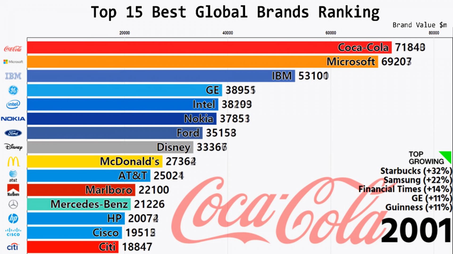 Cual infartante final de la Champions o de la NBA, los fanáticos del marketing están mirando este video que muestra los últimos 18 años de las Top 15 Best Global Brands.