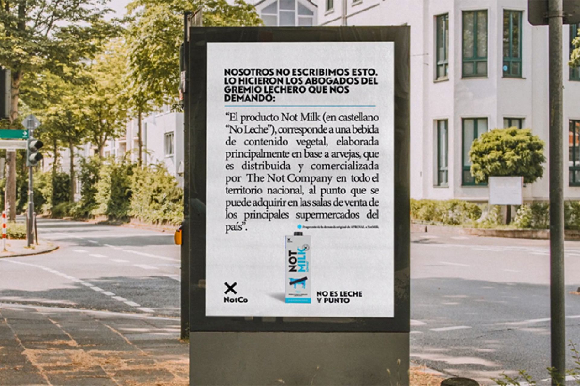 “En lugar de tratar de defender un nuevo punto, literalmente copiamos y pegamos citas de los extractos de los documentos judiciales originales que, irónicamente, definían a NotMilk de la manera exacta en que queremos que la gente sepa sobre el producto”, describieron en su momento los creativos de la iniciativa.