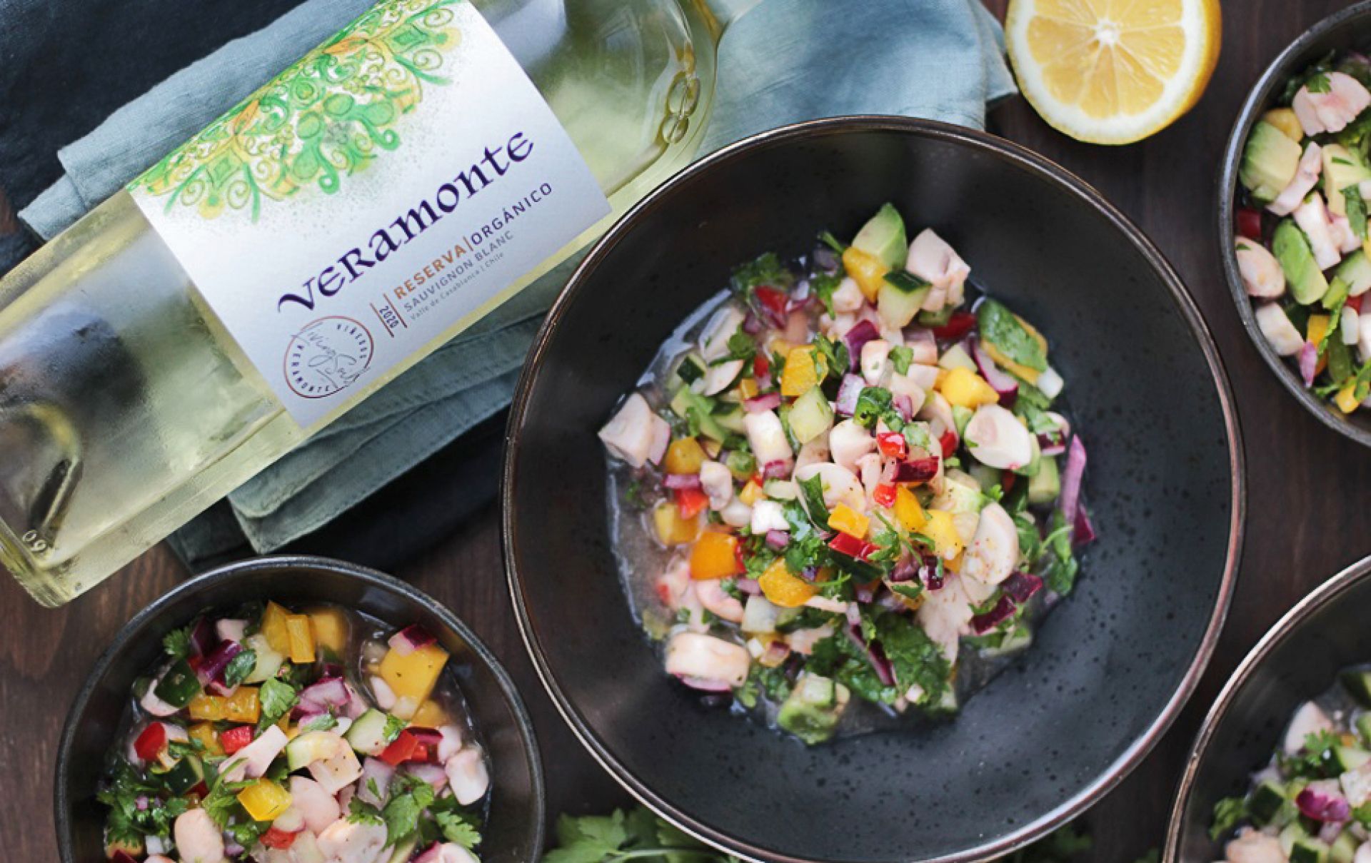 Como parte de la presentación de este vino, la actriz Maren Brownell, hoy también cocinera, recomienda como maridaje perfecto un ceviche de champiñones, preparación en línea con la creciente tendencia vegana que ella misma practica.