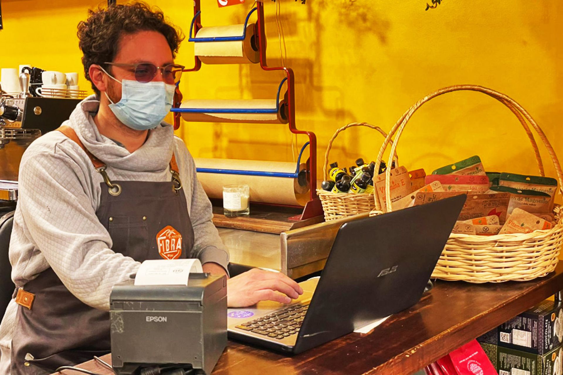 Juan Pablo Astorga, socio del almacén Fibra de Ñuñoa, especializado en productos para alérgicos alimentarios, usa una impresora de Epson que agiliza sus procesos de venta, lo que “ayuda a mejorar la conversión y dejar a nuestros clientes satisfechos”.